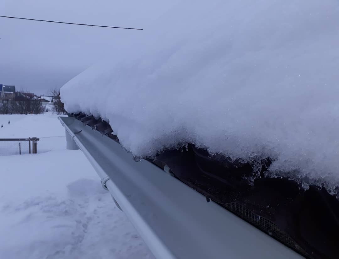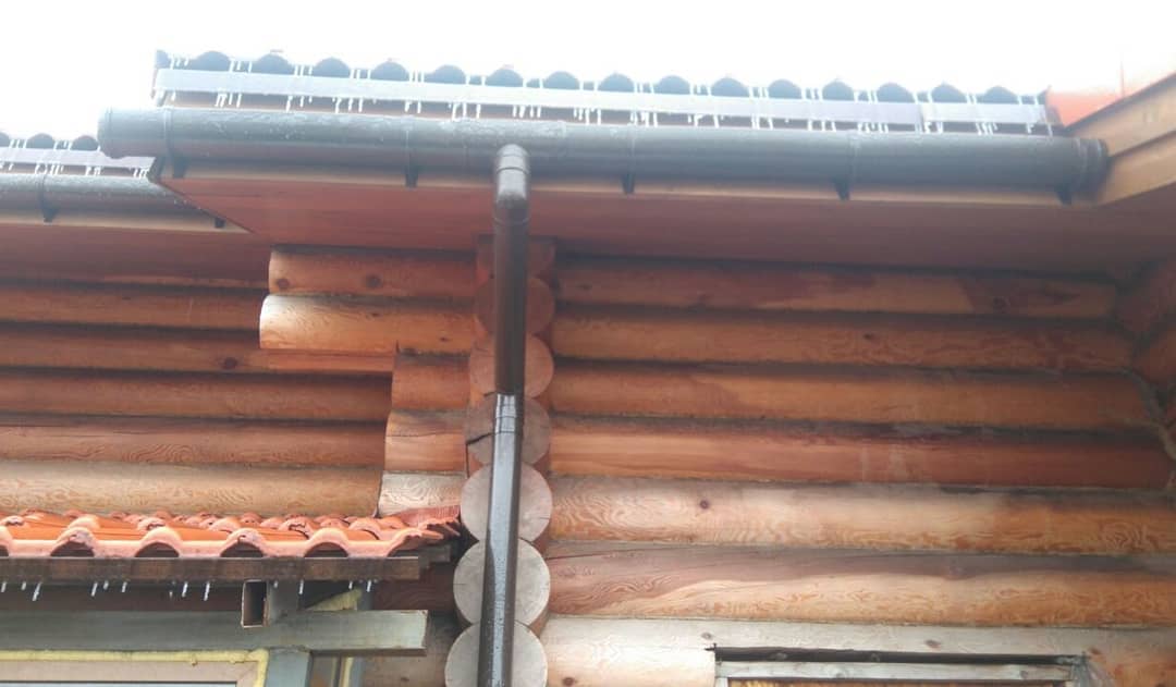 После дождя и при таянии снега вода по желобам направляется к сливным трубам. Если на объекте присутствует система дренажа вокруг здания, вода поступает сразу в коллектор.